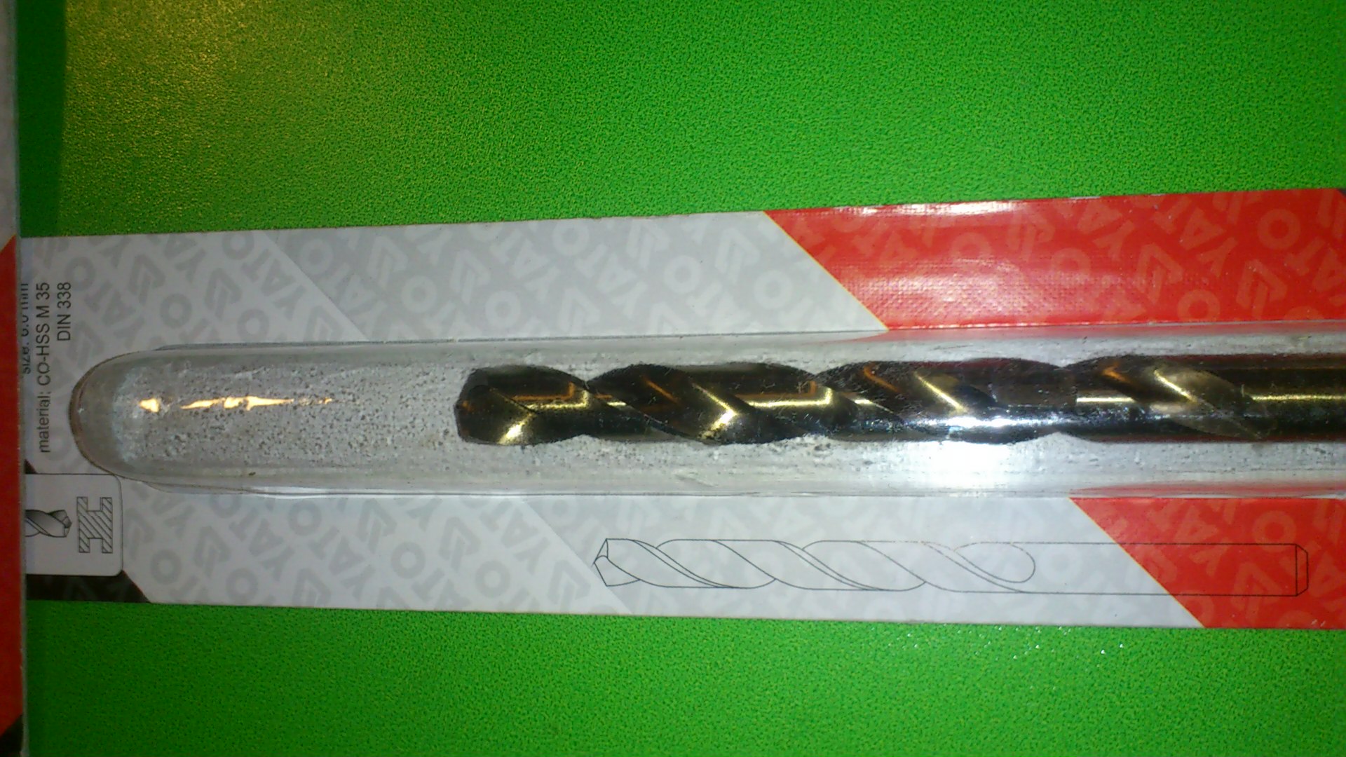 Spirálový vrták z legované rychlořezné oceli podle normy DIN 338 - obsah cobaltu 5 % - pravořezná šroubovice typu N - vrcholový úhel vrtáku 135° - křížový výbrus podle normy DIN 1412C - tolerance průměru h 8 - vrták do oceli broušený z plného materiálu